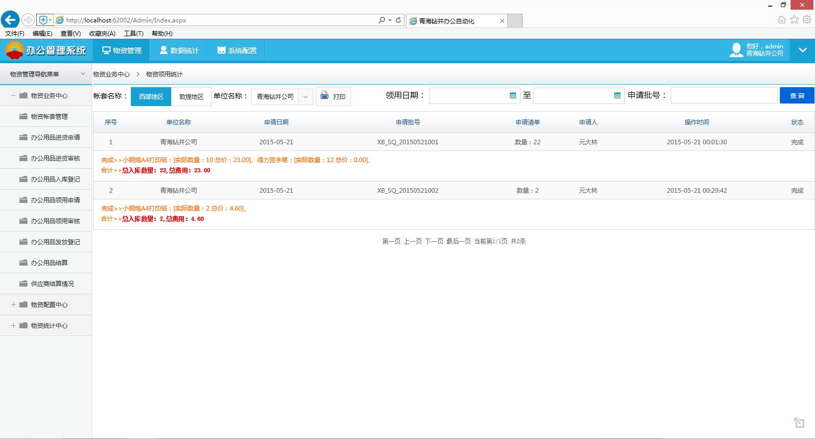 物資領(lǐng)用管理系統(tǒng)